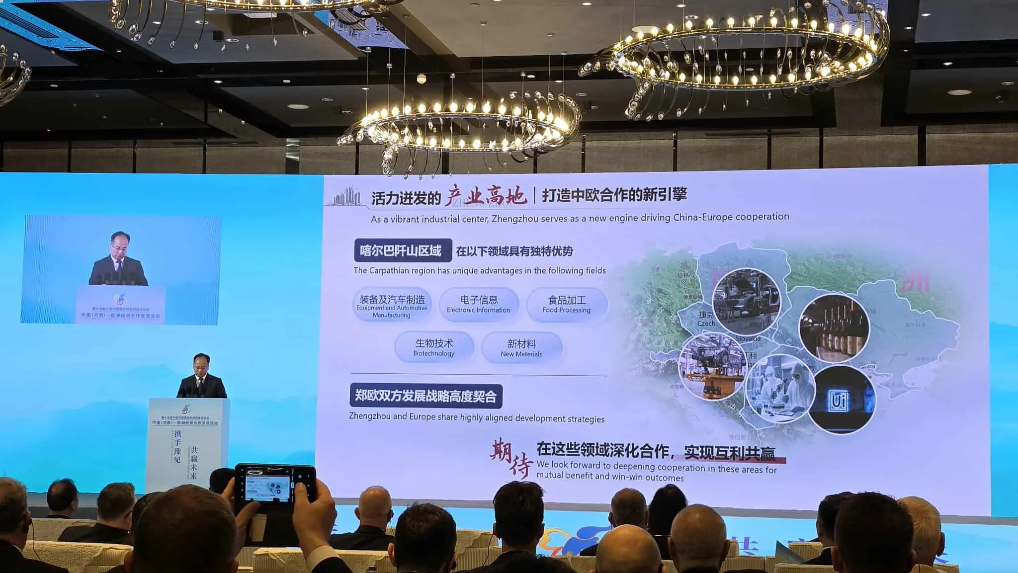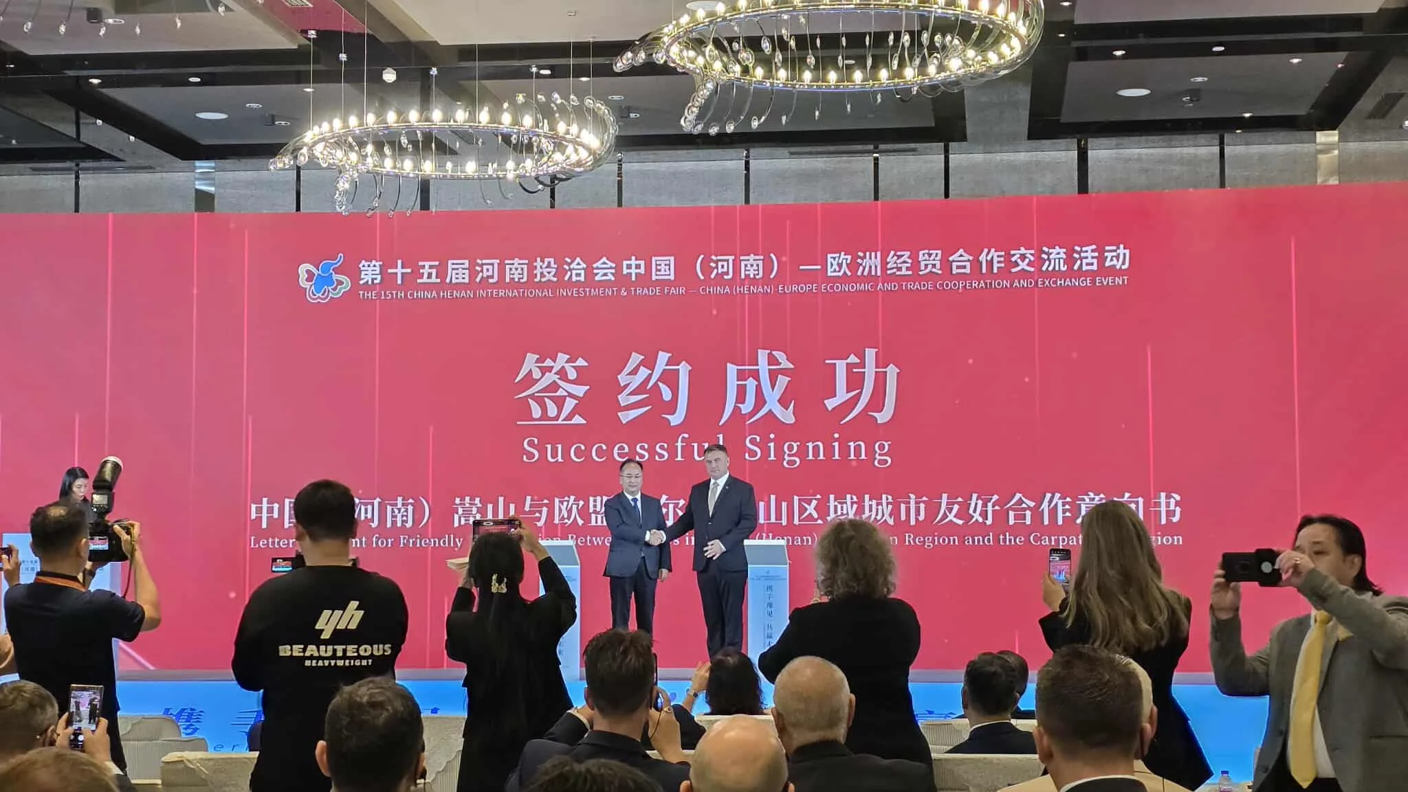 Nasledujúci deň sa konalo najdôležitejšie podujatie pre Euroregión – medzinárodné hospodársko-obchodné stretnutie „Región Songshan–Karpaty“. Diskutovalo sa o potenciáli a kľúčových sektoroch rozvoja hospodárstva a investičných možnostiach provincie Henan, mesta Zhengzhou a partnerských samospráv Euroregiónu. Vyvrcholením podujatia bolo podpísanie listu o zámere prezidentom Euroregiónu pánom Dawidom Laskom a predsedom mesta Zhengzhou v oblasti ďalšej spolupráce a budovania siete partnerstiev.